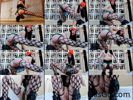 Goth Girl Public Pissing - with sexy babe Ledabear, golden urination tease - (2025 | dirty pee)