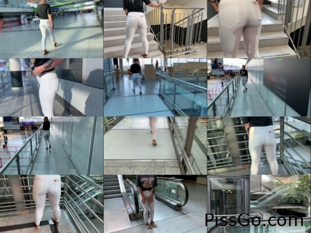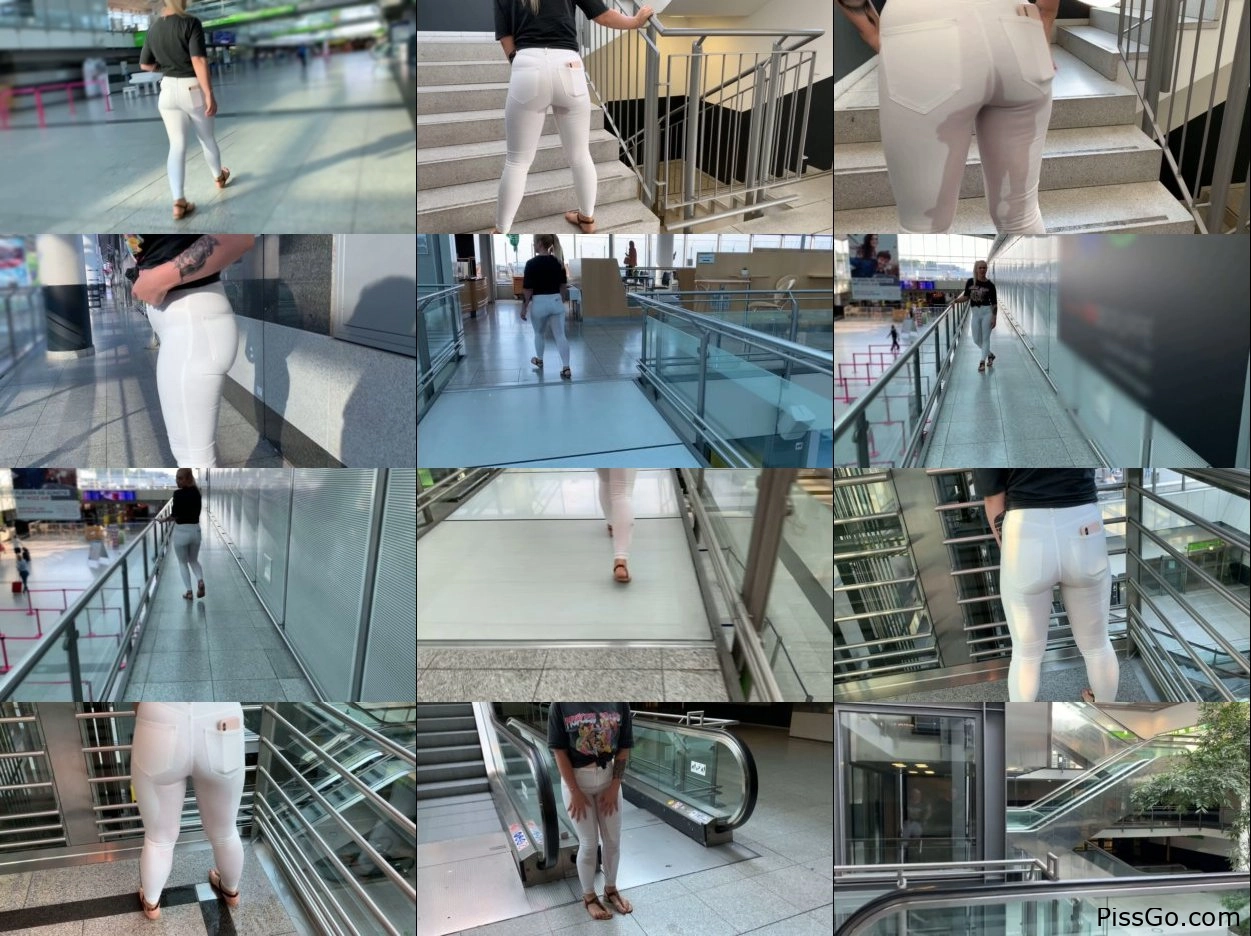 Wetting white jeans twice at the airport (2025|MPEG-4) fresh urination, 487 MB - golden pissing clip - Devil-Sophie