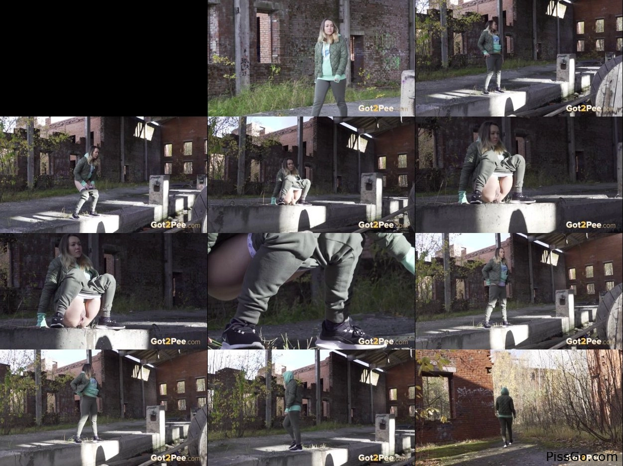 Deserted (2025|MPEG-4) lovely pee, 120 MB - wet bladder starts peeing