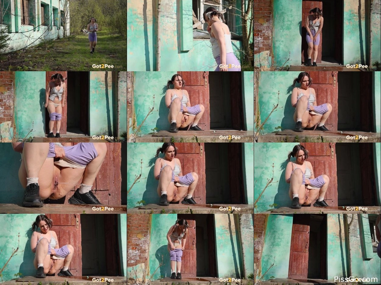 Shy Violet pisses an old building (2025|MPEG-4) pee game, 128 MB - Piss Addiction Scene - Violet Rilz