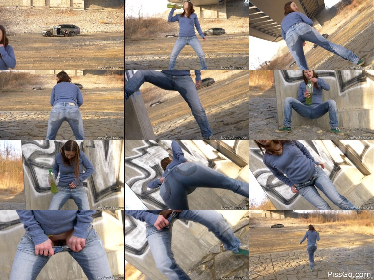 Wet Under The Bridge - with fiery tease Sally, soft bladder force urinate - (2025 | pretty pissing)