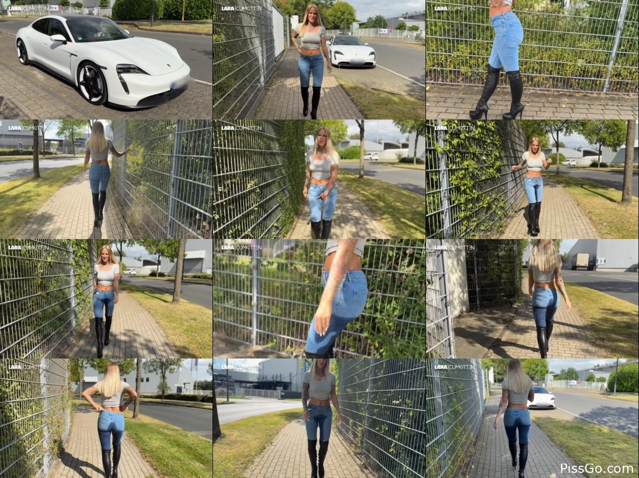 Jeans And Boots Pissed – Pisswalk On The Street (2025|MPEG-4) pee leak, 219 MB - pee splashing extreme - Lara